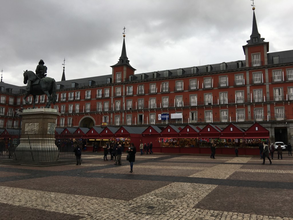 כיכר המונית וגדולה אבל עליזה במיוחד וגם מקושטת לחג. נראה כאילו כל תושבי מדריד נמצאים בערב בחוץ. העיר הזו מתעוררת בערב. המון רב ברחובות. כל יום נראה כמו ערב יום העצמאות אצלנו. צפוף צפוף אבל שמח במיוחד.