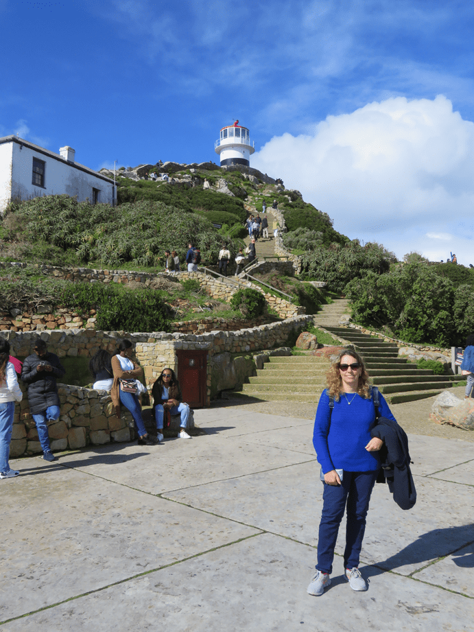 אנחנו מתחילים מקייפ פוינט (נוסעים עם הכביש של השמורה עד שהוא נגמר וחונים). מטפסים אל המגדלור שעל ראש הגבעה בגובה של 245 מטר. מן המגדלור נשקף נוף מרהיב של חצי האי ושל שני האוקיינוסים, האטלנטי וההודי. ליד המגדלור שושנת רוחות עם מרחקים לערים שונות בעולם.
