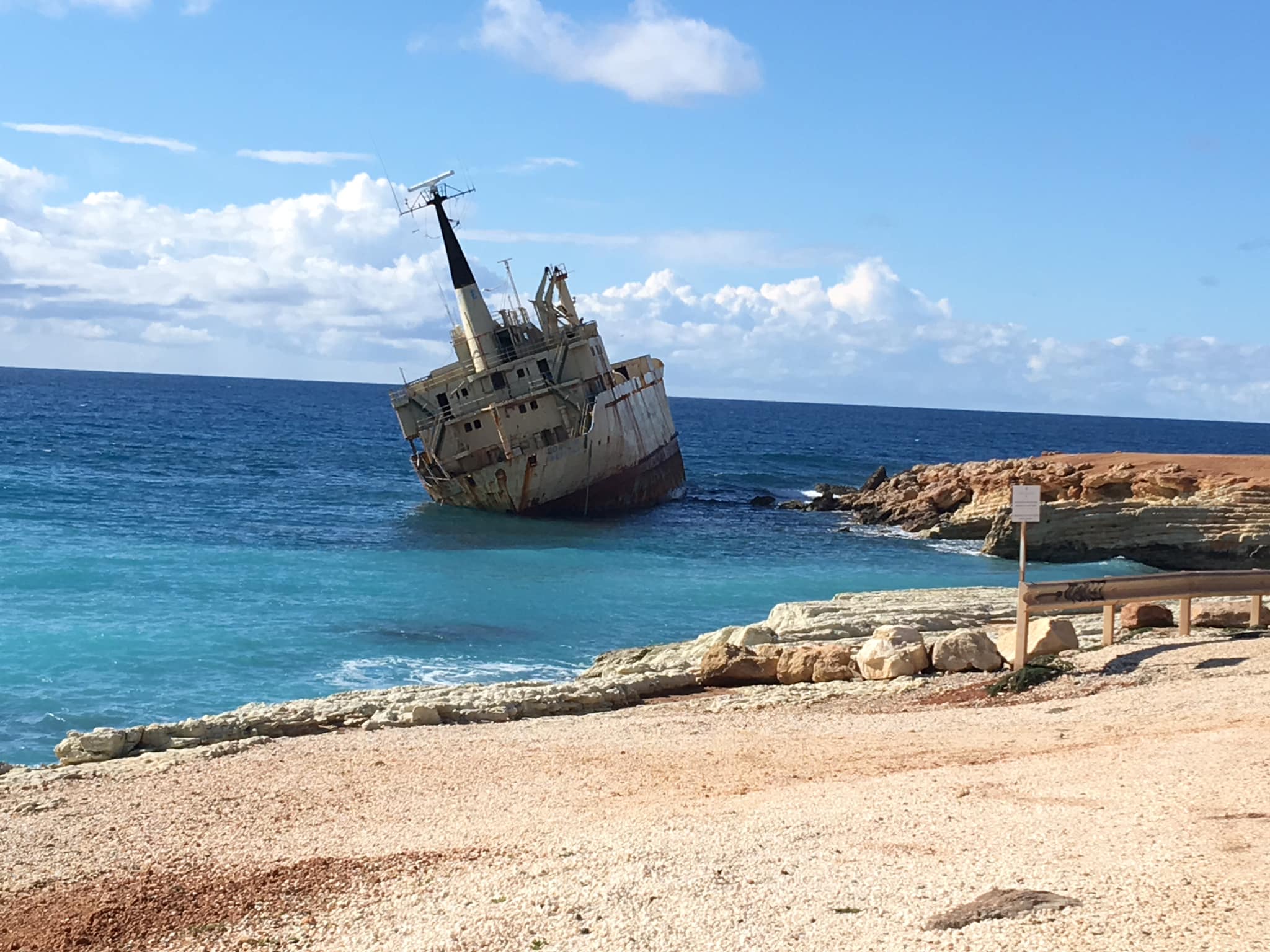 בתוך 20 דקות נסיעה אנחנו מגיעים לאתר הספינה. זו ספינה אלבנית ששטה תחת דגל של סיירה לאון וטבעה בשנת 2011. היות ועלויות החילוץ היו גבוהות מדי היא ננטשה.