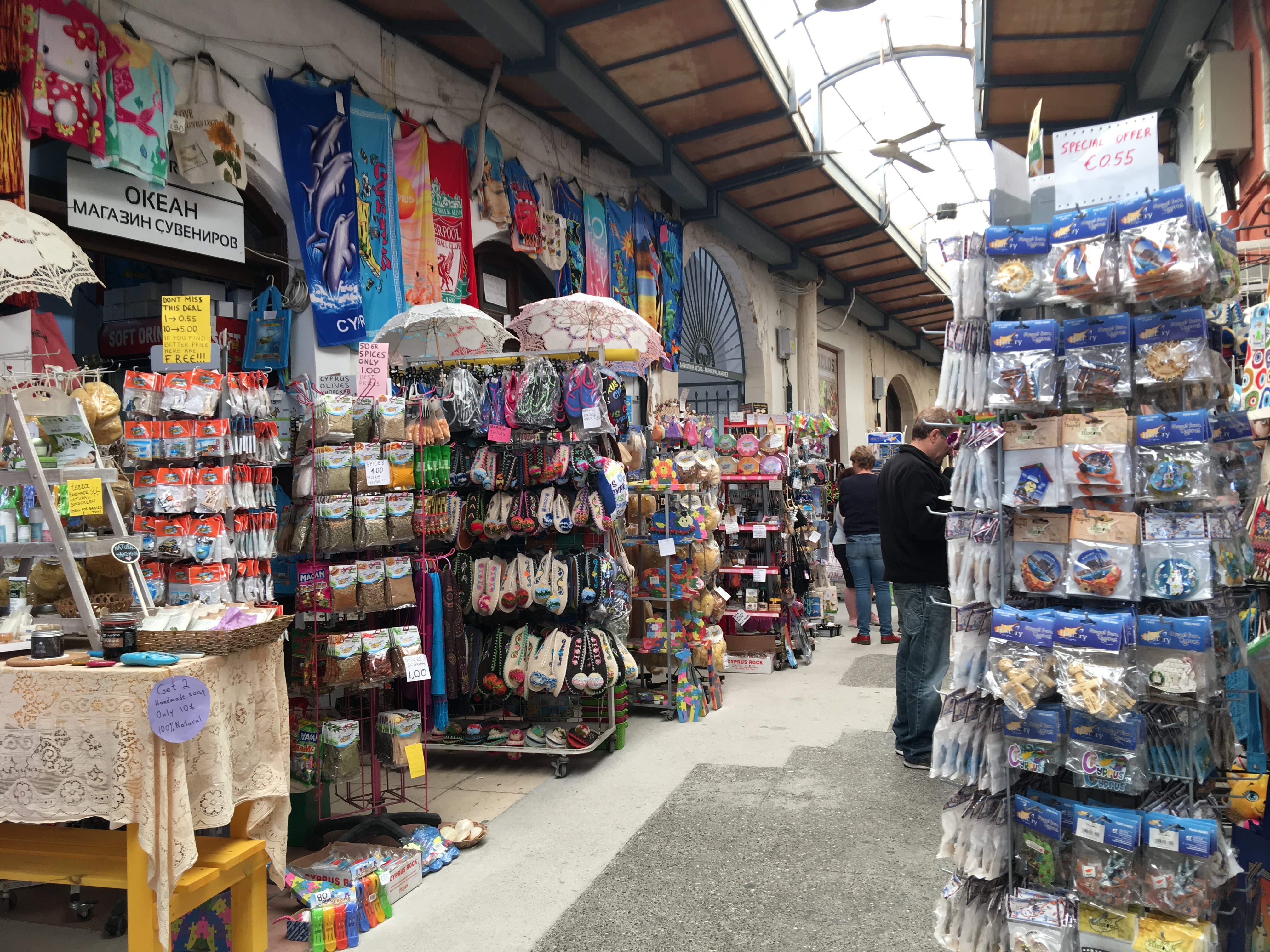אם חשבנו שאתמול היה רדום כאן והיום יהיה שוקק חיים, אז טעינו בענק. אמנם היום החנויות ובתי הקפה פתוחים אבל פאפוס של החורף עדיין נמה את שנתה. האזור כולו מאד מטופח ויפה. השוק התיירותי נקי ונעים. סביב השוק רשת מדרחובים עם חנויות יוקרה. קונים לא ראינו.