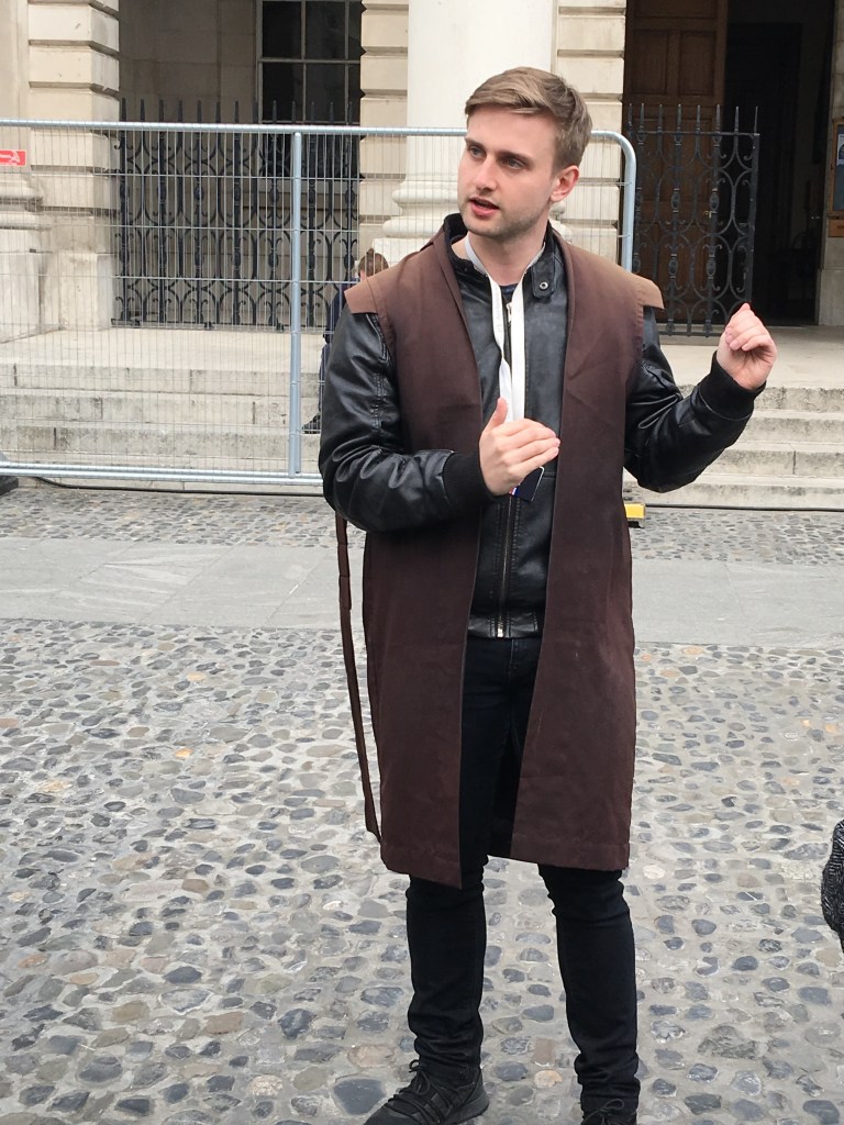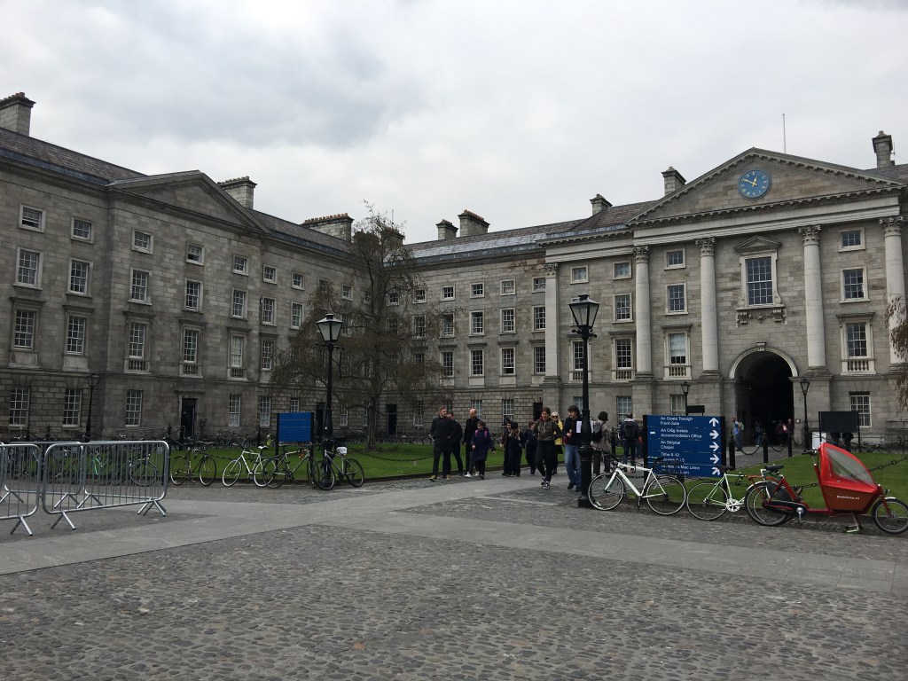 המדריך שלנו הוא סטודנט שמסיים לימודיו השנה. גם בשנת 2019 הסטודנטים נדרשים ללבוש גלימות של פעם בכיתות הלימוד ובארועים רשמיים. ככל שהסטודנט מתקדם בתואר יבוצעו שינויים קלים בגלימה. אז הנה הוא בגלימה של "כמעט בוגר". טקס הסיום נערך יום לאחר ביקורנו ובקמפוס כבר נערכים לטקס ובונים במה (מעוטרת בפרסומת לבירה, כיאה לדבלין).