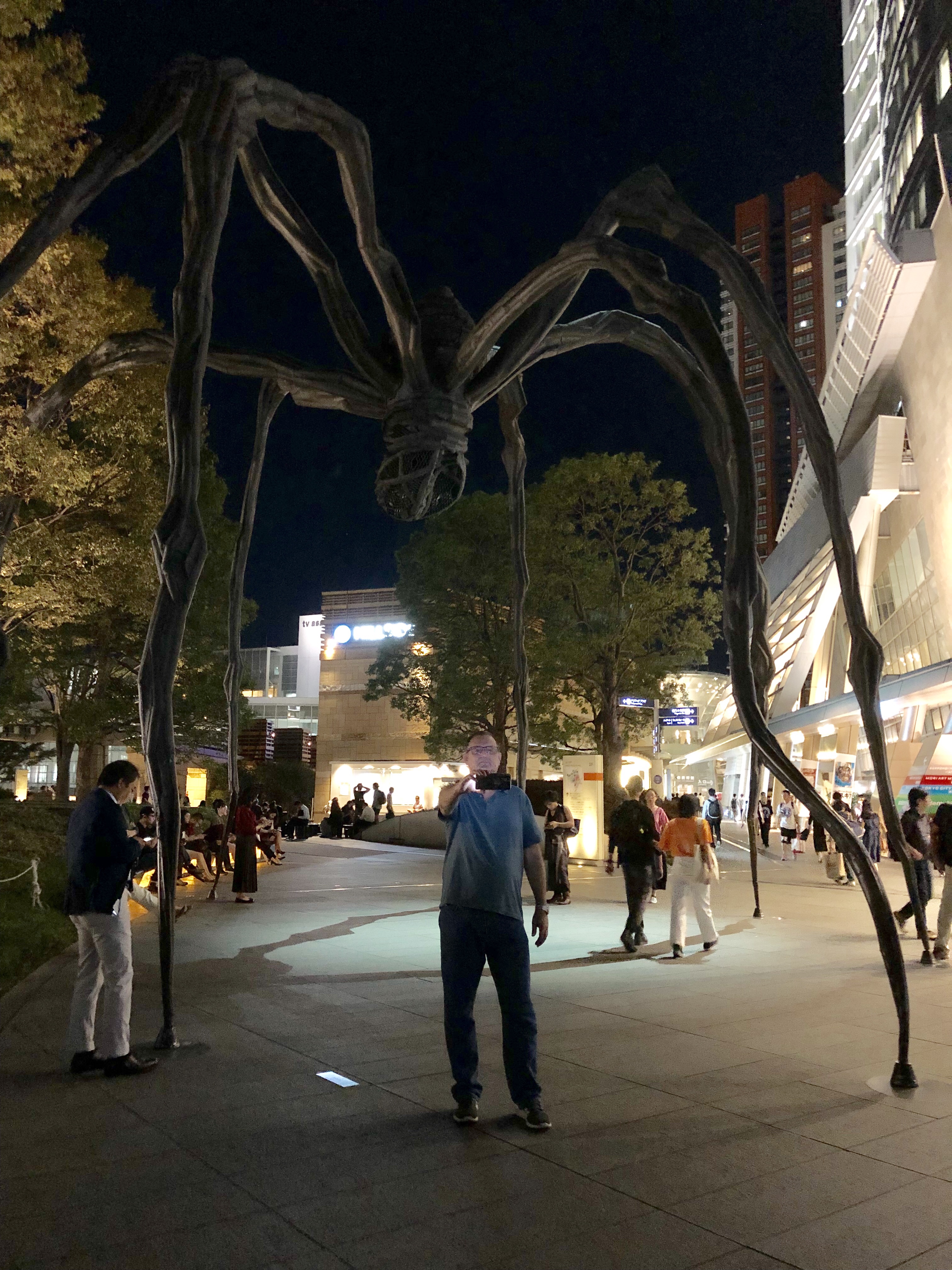מגיעים לצילום המתבקש עם העכביש של רופונגי הילס ותצפית על ״ מגדל האייפל״ של טוקיו Tokyo tree. במתחם הזה נמצא גם מוזיאון מורי בבנין הגבוה שנראה בתמונה למעלה. עכשיו כבר די מאוחר המוזיאון סגור אז אנחנו מוותרים. עליו וגם על מרפסת התצפית השווה שיש בו (כניסה בתשלום נוסף). אולי נחזור לכאן בהמשך הטיול ואולי לא. נראה. טוקיו ענקית ולמרות שנקדיש לה שישה ימי טיול, אין סכוי להקיף את כל האפשרויות.