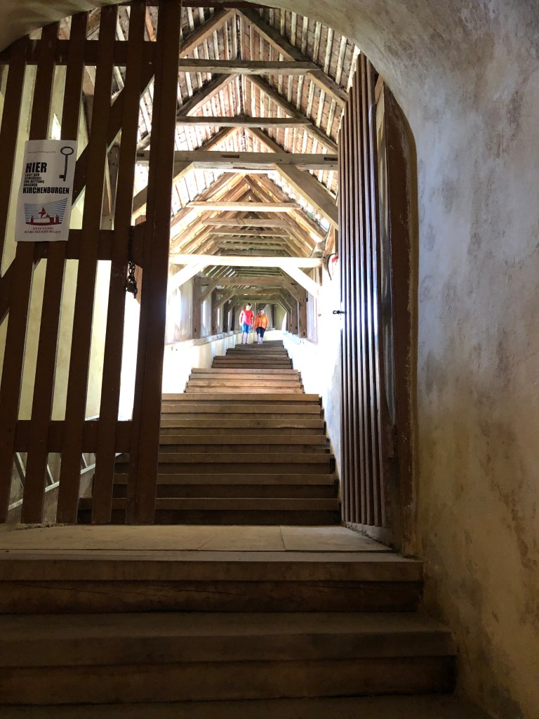 175 מדרגות אבן נבנו ב 1662 כדי להגן על התלמידים מפגעי מזג האוויר בדרכם אל בתי הספר. המדרגות מקורות בגגון עץ. אנחנו מטפסים מעלה. במעלה המדרגות נמצאת הכנסייה היפה Biserica din deal din Sighișoara ובית הקברות. גם נוף יפה של העיר ניבט משם.
