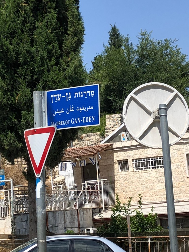 מהבית של רות מובילה סמטה צרה אל עץ התות הגדול. חוצים את הכביש ומגיעים למדרגות גן עדן. כן, כך נקראות המדרגות היורדות אל חלק אחר של הכפר. באזור זה התיישבו עולים מתימן שהובאו לישראל במבצע מרבד הקסמים. העולים הגיעו לירושלים אחרי שהייה במחנה עולים בעתלית. כאשר סיפרו להם שהם עומדים לעבור לישוב קבע בירושלים שמחו מאד, ומה רבה היתה אכזבתם כשהגיעו לעין כרם ומצאו כפר ערבי נטוש וחסר תשתיות בסיסיות. מספרים שהעולים סרבו לרדת מהאוטובוסים שהביאו אותם למקום. לא כך דמיינו את ירושלים. עד שאחד מהם, זקן החבורה, ראה את המדרגות היורדות אל הואדי ושכנע אותם לרדת ולהתיישב במקום. האיש אמר שהמקום קרוב דיו לירושלים והמדרגות הן "מדרגות גן עדן" שמובילות לירושלים. כך קיבלו המדרגות את השם והאזור הפך לשכונה של עולי תימן. במרוצת הזמן קלטו עליה מארצות נוספות. לעיתים התגוררו מספר משפחות בבית אחד.