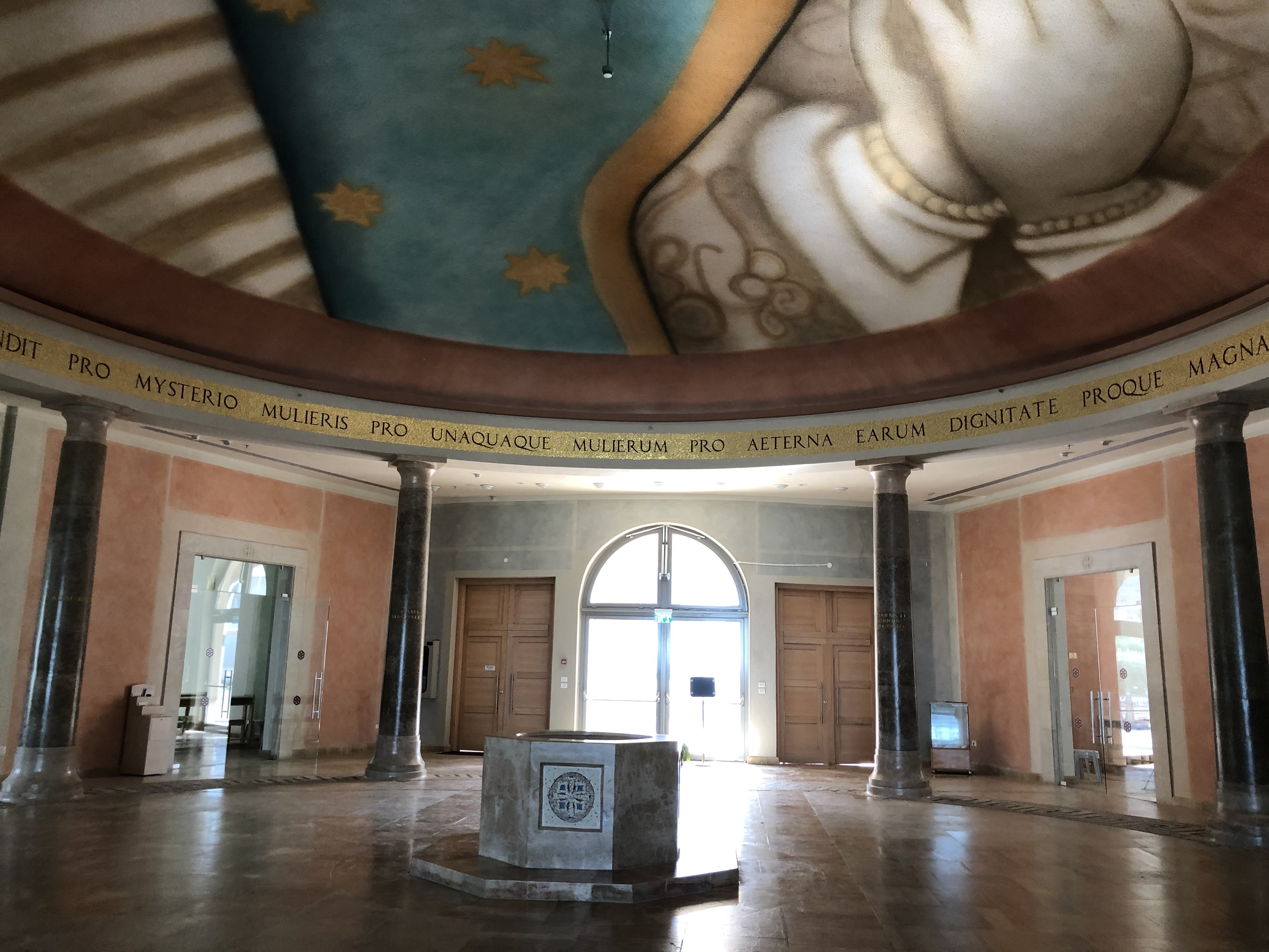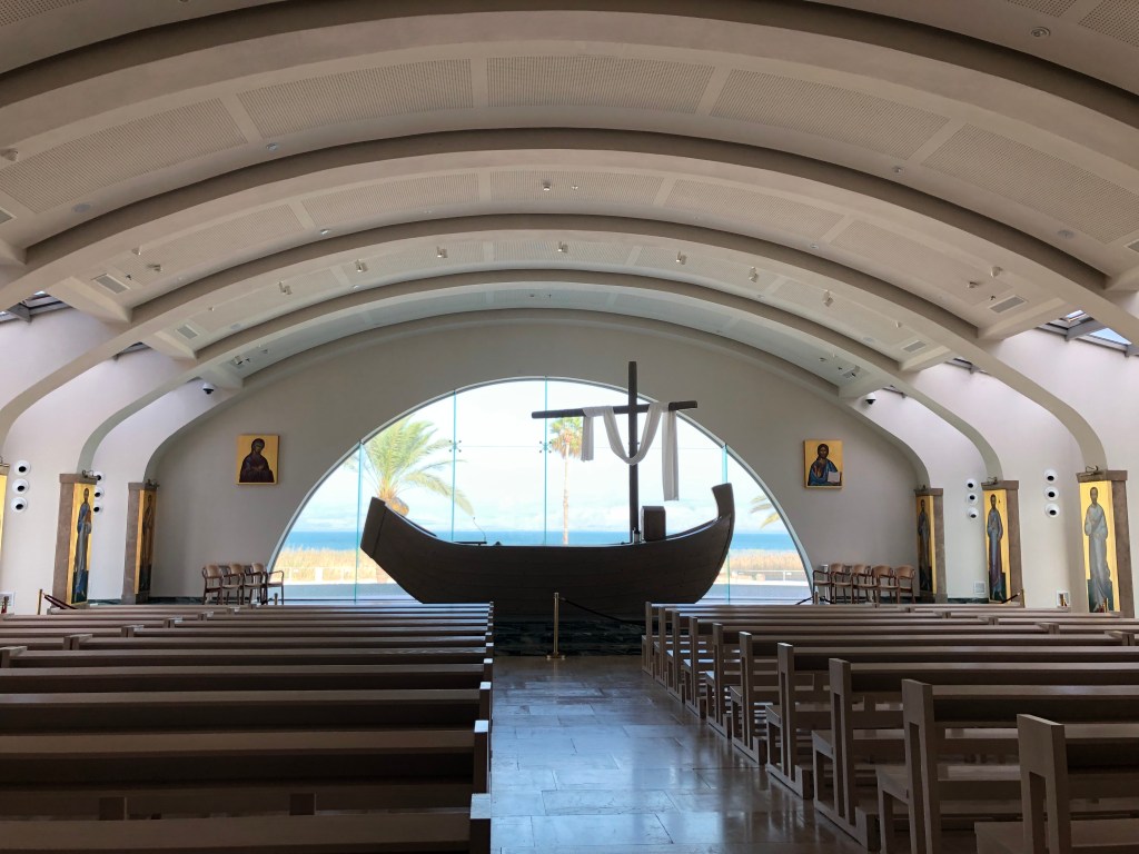 החללים שלו גדולים ומרשימים, התקרה היא כיפה מצוירת וחלקים מפסיפס מקורי של העיר מגדלא משולבים ברצפה. האולם המרכזי הצופה לכנרת מרשים ויש בו דגם של סירת דייגים. עוד על המרכז הרוחני ועל מלאכת החשיפה והשימור אפשר לקרוא כאן.