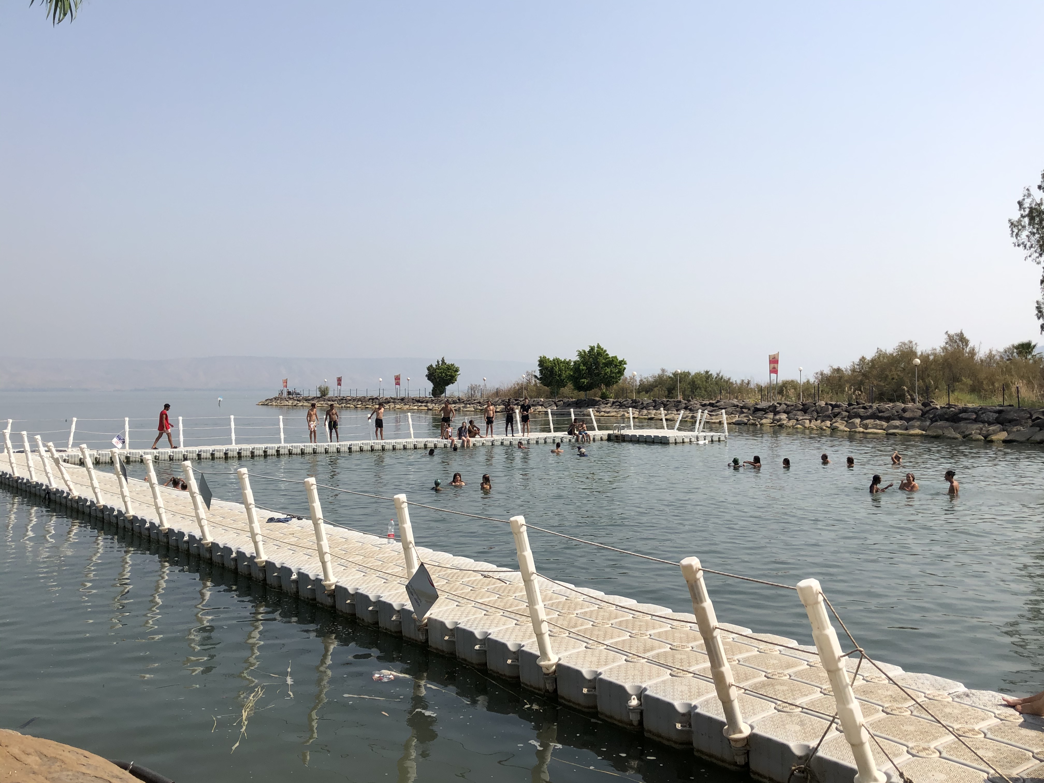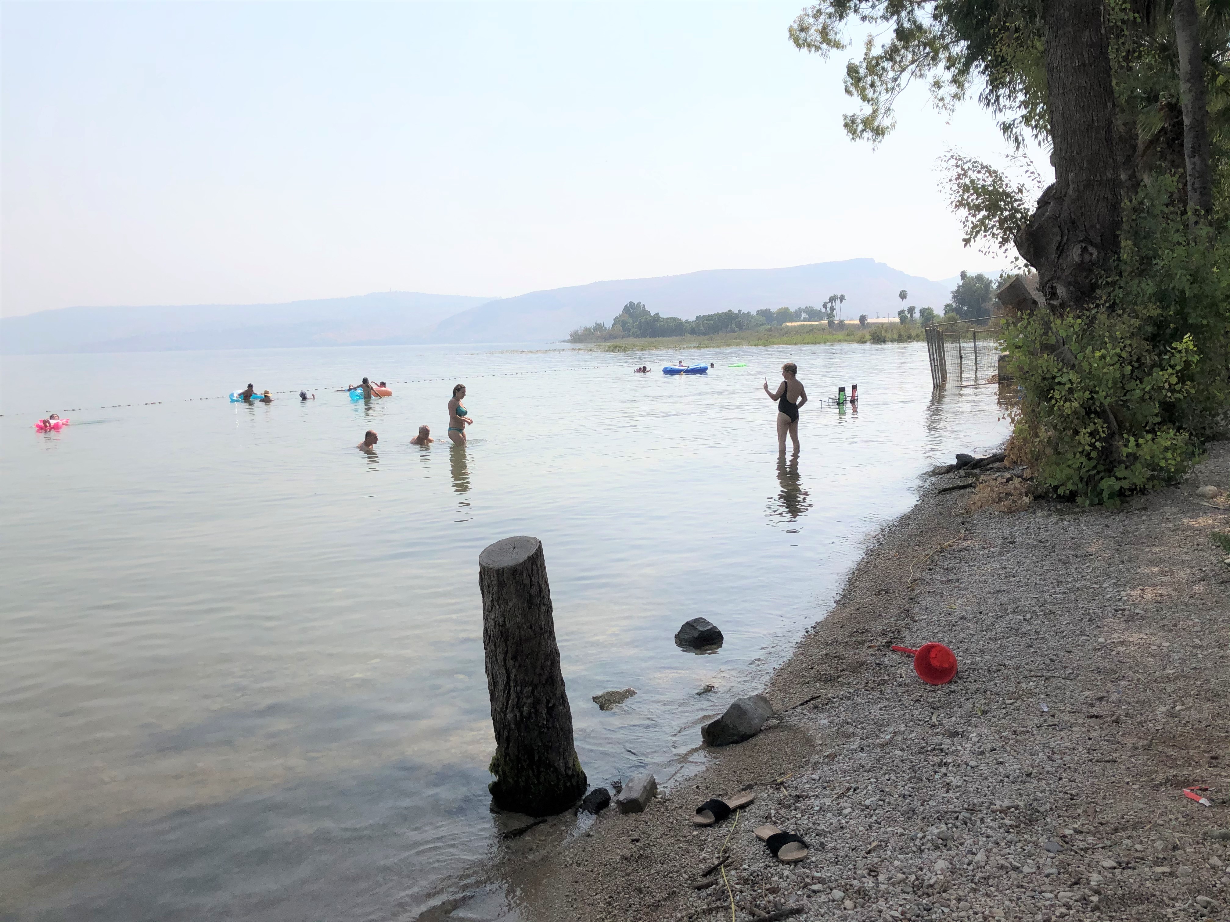 עכשיו כבר שעת צהריים מאוחרת. יורדים מהמצפה ומחליטים לבקר באחד החופים של הכנרת. רוצים לבדוק מקרוב כמה עלה מפלס הכנרת בעקבות גשמי הברכה. האמת שזה רק תירוץ. כמו שכבר הבנתם, חובבי מים אנו ואת רוב החופשה העברנו בטבילה פה ושם. נסענו לחוף גינוסר שהוא חוף מוכרז ומסודר. המים נקיים ונעימים. הכנרת שקטה כמו בריכת שחיה. יחד איתנו עוד קבוצת נערים מאורגנת וזהו בערך. היה נעים מאד. בילינו במקום שעה ארוכה. כיף גדול. חוף הרחצה גינוסר נמצא בשטח קיבוץ גינוסר, אך פתוח למתרחצים. תצטרכו לשלם עבור החניה בלבד (כחול לבן). במקום גם שירותי הצלה, מדשאות ושירותים ציבוריים. אסור להשאר ללינת לילה. בצמוד לחוף נמצא בית יגאל אלון לזכרו של יגאל אלון שהיה חבר הקיבוץ ונקבר בו. המקום משמש מוזיאון לתולדות הגליל ומרכז חינוכי לנוער, חיילים וסטודנטים. סגור זמנית בשל הקורונה.
