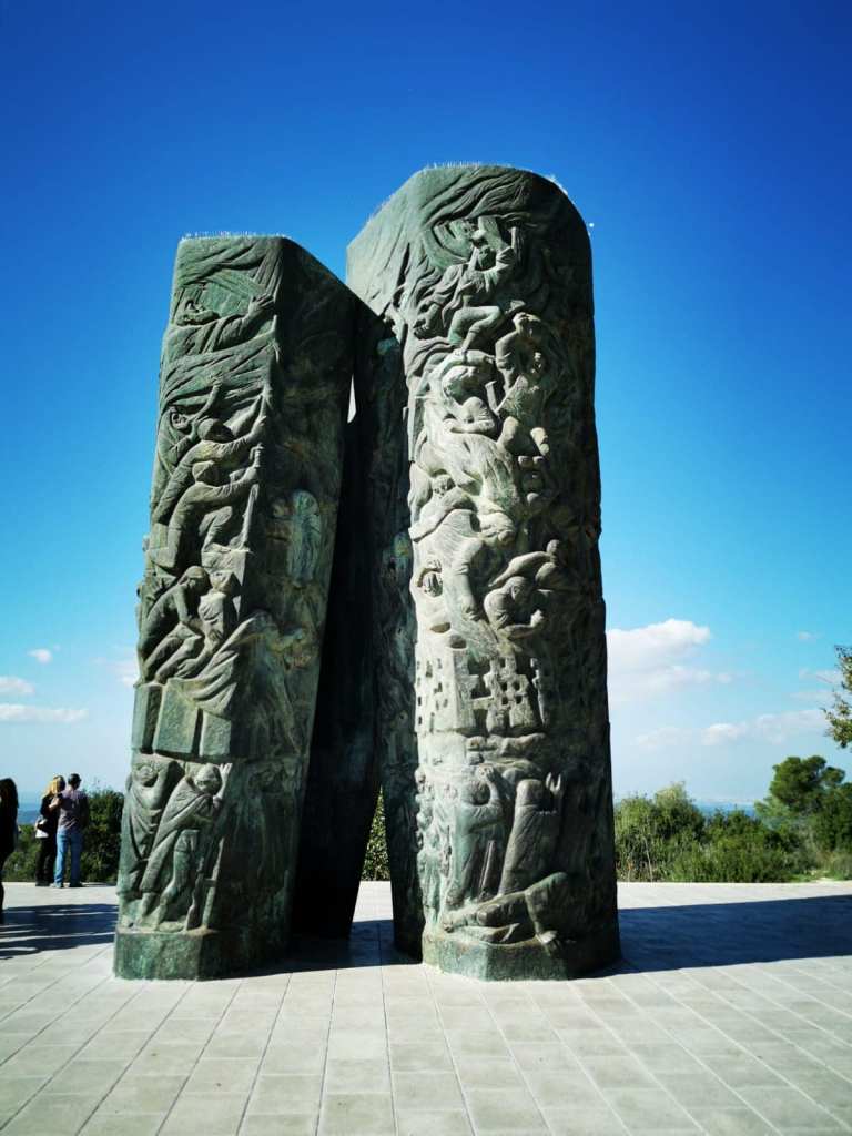 את הטיול התחלנו באנדרטה המרגשת והמרשימה של נתן רפפורט- גוילי האש. זו אנדרטה גדולה הבנויה שני עמודים גבוהים. הימני עוסק בשואה וחורבן והשמאלי בתקומה ובניה. כדאי לשים לב לסמלים המשובצים בה. בתוך האנדרטה חרוטים פסוקים מספר יחזקאל.
