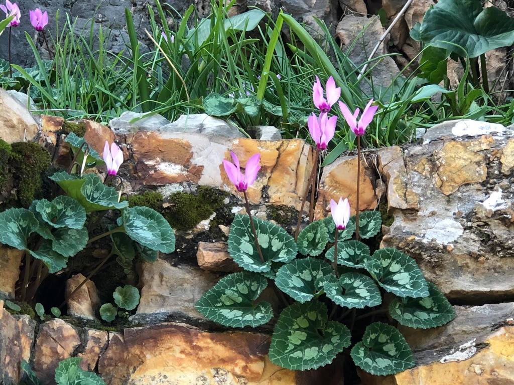 המשכנו במסלול הקדושים. זה מסלול המסומן ירוק לבן. המסלול עובר ביער פסטורלי. הוא מתחיל בדרך רחבה אך הופך לשביל צר ודי תלול היורד בהר. בזמן הביקור שלנו הרבה פרחי חורף לצד הדרך.