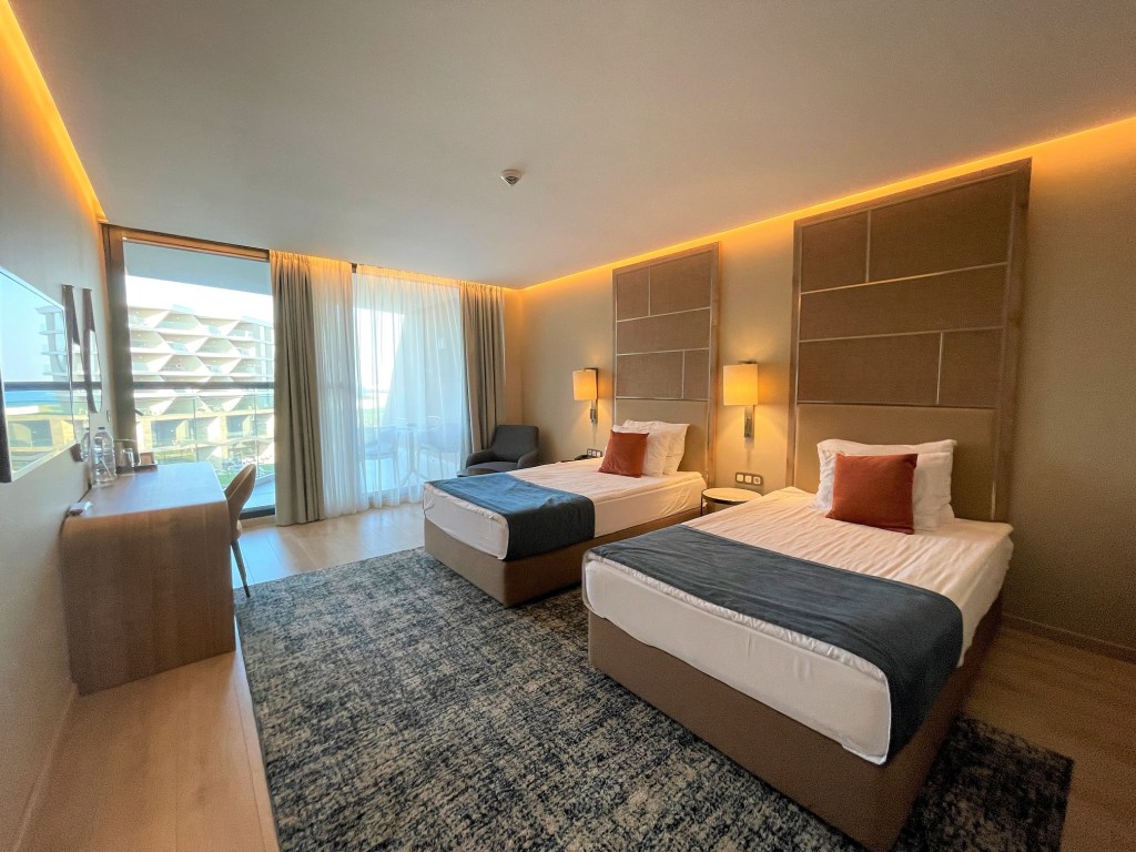 WAVE הוא רזורט משפחתי מצוין. ממש גן עדן עם אפשרויות לכל גיל. יש כאן פארק מים גדול ויפה עם שפע מתקנים לילדים, חוף ים צמוד, אזור בריכות למבוגרים בלבד, מתחם ספא משוכלל. חדרים ענקיים. אולי החדר הגדול ביותר בו התארחתי. המלון חדש. נפתח לפני שנתיים בלבד ונבנה על ידי חברה טורקית בסטייל של הקלאבים בטורקיה.