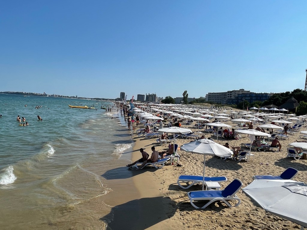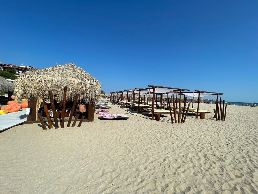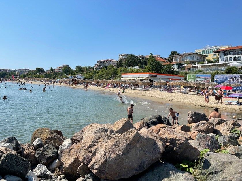נראה שכולם עוברים פה בדרך לחוף והוא באמת יפה. מנוקד שמשיות ונקי. הנופשים נהנים מרחצה וספורט ימי. חלקם מטגנים עצמם בשמש. אם ורנה הייתה קצת סגרירית בימים שבקרנו, פה נראה חם, שמח ותוסס. כמה תעלה מיטת שיזוף או שמשיה? 5 לב לכל היום. 10 שקלים בשפתנו. נוח.