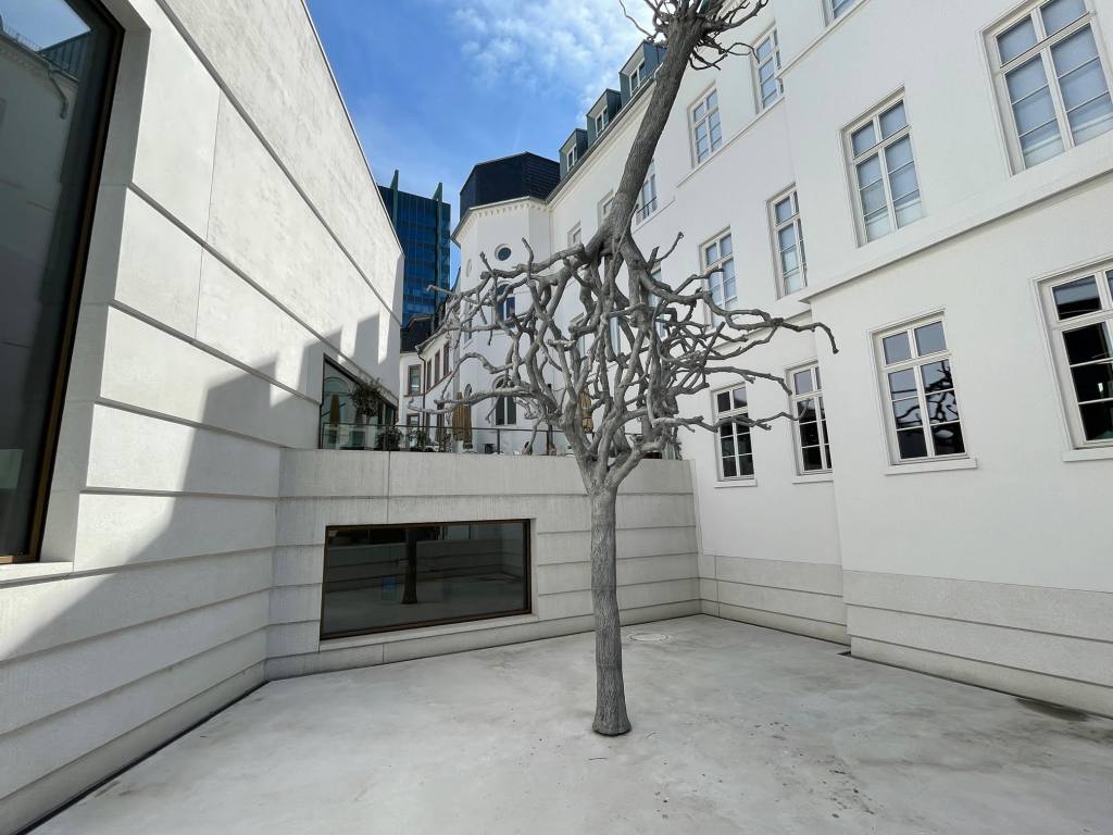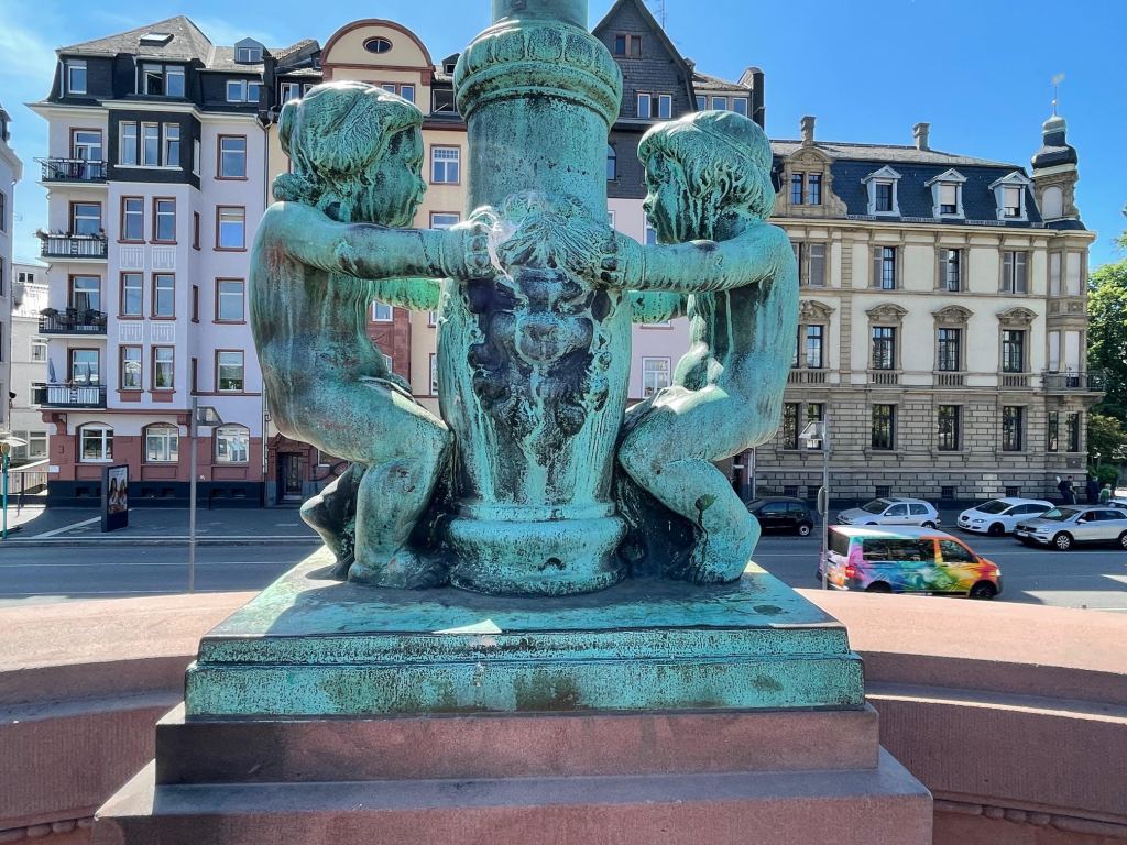 אנחנו בחרנו לבקר במוזיאון היהודי החדש שנפתח בעיצומה של מגפת הקורונה בשנת 2020. המוזיאון ממוקם ליד הנהר בבית מידות לבן וגדול שהיה שייך למשפחת רוטשילד ומבנה חדש נוסף שנבנה לידו. בחצר פסל מרשים של הפסל הישראלי אריאל שלזינגר. שני עצי מתכת, עומדים זה על זה כמו בתמונת מראה. אחד נטוע באדמה והשני שורשיו באוויר. הפסל מסמל אולי יותר מכל את מצבם של יהודי העיר ויהודי גרמניה שהרגישו תמיד מחוברים ותלושים.