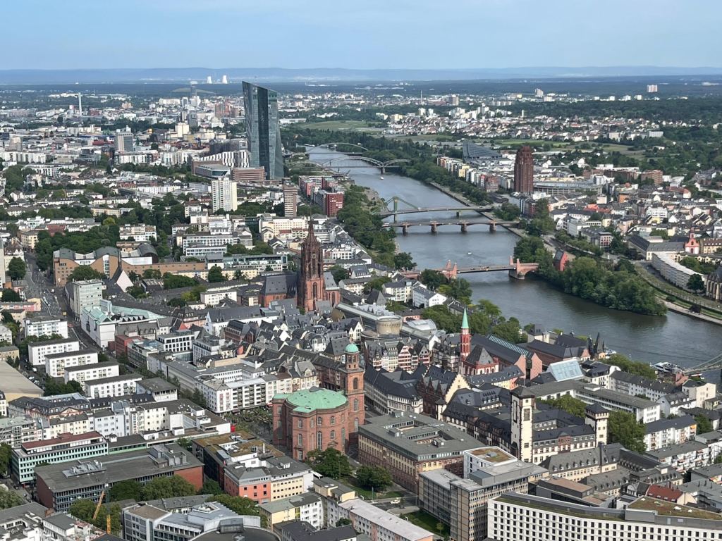 פרנקפורט היא עיר שבנויה לגובה. מי שמגיע לפרנקפורט לא יכול שלא להתפעל מהמגדלים שחוצים את קו הרקיע. לא סתם העיר נקראת ״מיינהטן״- מנהטן שעל המיין. המיין הוא הנהר הגדול והמרשים שחוצה אותה ועליו גשרים. הבניה בעיר חדשה ברובה. למעשה למעלה ממחצית העיר נהרסה במלחמת העולם השנייה. העיר שנבנתה על החורבות נבנתה כעיר מודרנית מלאה בגורדי-שחקים.