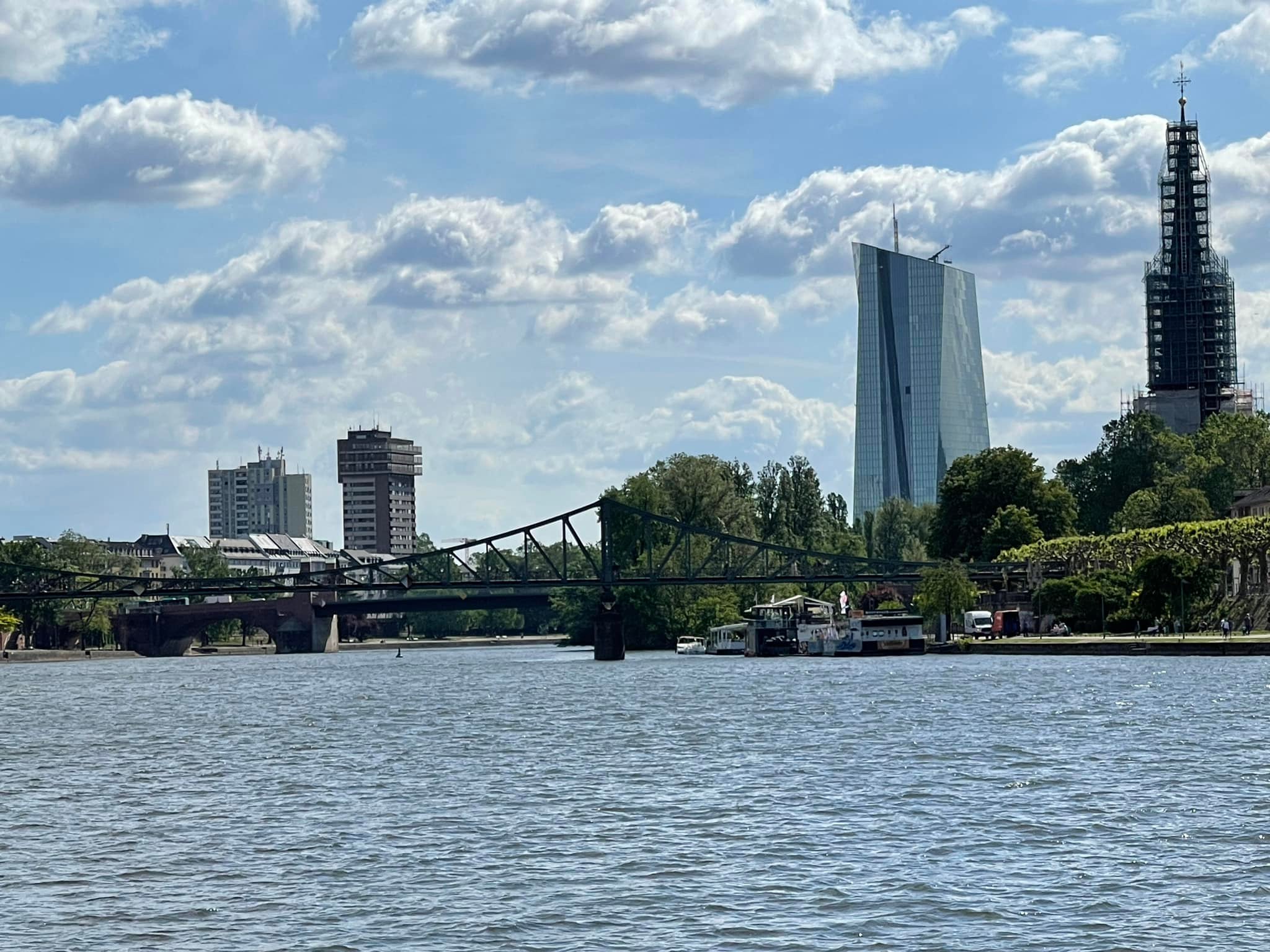 לפרנקפורט הגענו בטיסת בוקר מוקדמת. היות והחדר לא היה מוכן, פתחנו את הביקור בטיול נעים לאורך נהר המיין. הנהר הרחב מחלק את העיר לאזור צפוני ודרומי. מצפון לנהר העיר העתיקה ומדרום, שדה התעופה רובע בילויים Sachsenhausen, שדרת המוזיאונים שצמודה לנהר וגם האצטדיון הגדול Deutsche Bank Park שמארח את ההופעה שבזכותה הגענו לעיר.