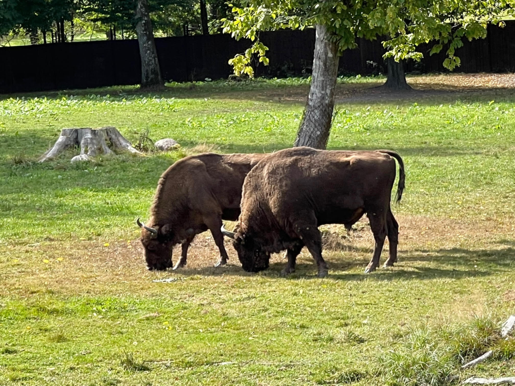 המסלול מסתיים בשמורת הביזון. הגענו אליה כדי לצפות בביזונים שקשה מאד לפגוש בטבע. השמורה היא בית גידול בו מתקיימים תנאים חצי טבעיים. בעלי החיים גדלים ברווחה בשטחים מגודרים. הביזון הוא בעל חיים גדול ומגושם. גבהו הממוצע שני מטרים. הוא חי בלהקה ולמרות מראהו, יש בו חן. גם ביזון תינוק ראינו שם, יונק חלב אימו. עוד בשמורה עדר איילים, שועלים, זאבים וסוסי פוני. המקום מטופח מאד וכולל מרכז לימודי אינטראקטיבי, מתקני שעשועים ומתאים במיוחד לביקור עם ילדים.
