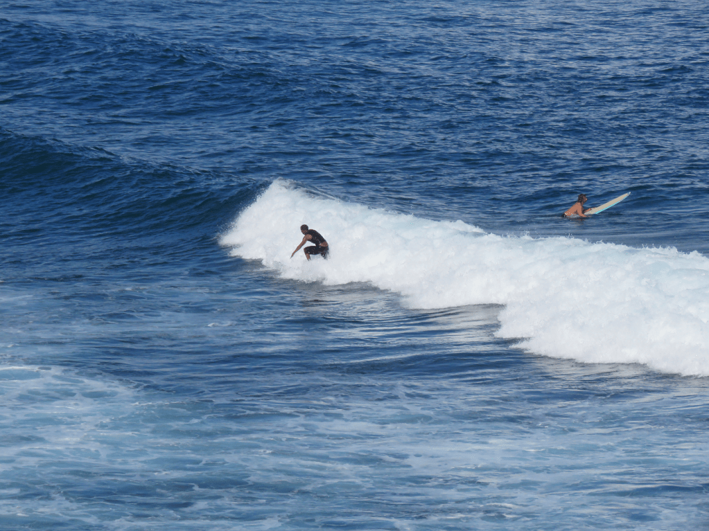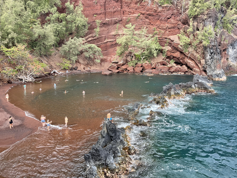 הוואי ידועה בסצנת הגלישה וכאן ראינו מופע גלישה נהדר. הנה לינק לסרטון שהעליתי באינסטגרם. תוכלו לראות בו את החוף הזה והצצה קטנה לחוף השחור והאדום.