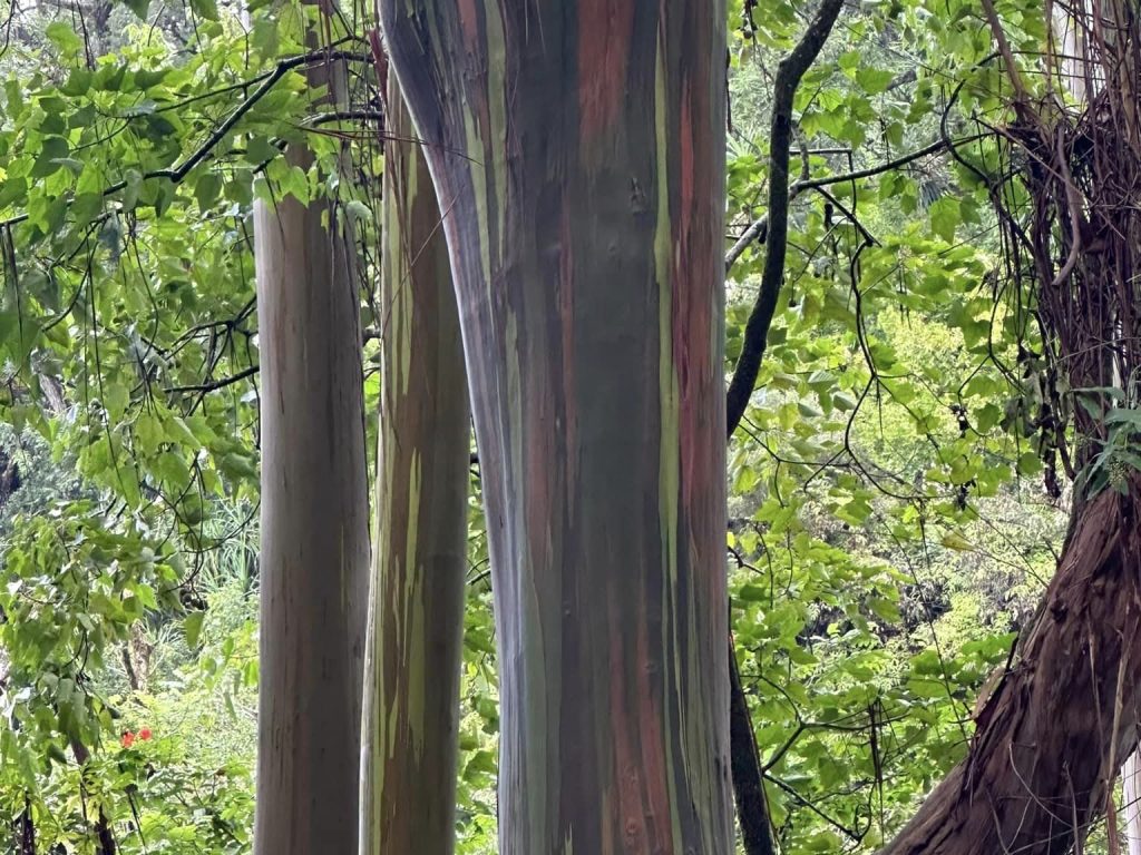 עצי אקליפטוס צבעוניים לאורך הדרך עושים לנו שמח בלב.