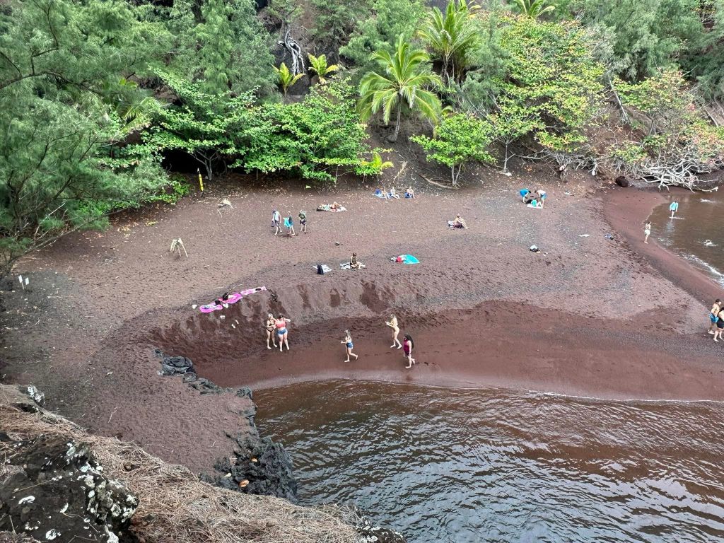 החוף האדום – או "החוף הסודי" כי ההגעה אליו לא מסומנת ולא קלה. ממליצה לבדוק את תוואי הדרך לפני היציאה. לא מתאים לבעלי פחד גבהים כי כרוך בטיפוס והליכה על שפת מצוק צר. החוף עצמו יפיפה. החול אדום וישנו שובר גלים שיוצר מעין בריכות. הילדים שלי התלהבו מאד ולהלן סשן הצילום. אנחנו חלוקים מה יותר יפה החוף השחור או האדום. טיפ – אל תבואו כמונו בכפכפים. לא מתאים.