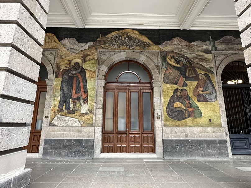 על הקירות עשרות ציורי קיר – מורלים, מעשה ידיו של האמן המקסיקני המפורסם דייגו ריברה. הציורים הענקיים מרשימים מאד. ממליצה בחום על הביקור.