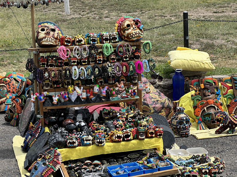 האתר גדול ונקי. ישנם רוכלים וגם חנויות מסודרות שישמחו למכור לכם מזכרות אופייניות לאתר ולמקסיקו. טיפ- לפני היציאה מכוון פירמידת הירח תמצאו שורת חנויות נוספת. שם נצפו המחירים הטובים ביותר ואפשר קצת להתמקח.