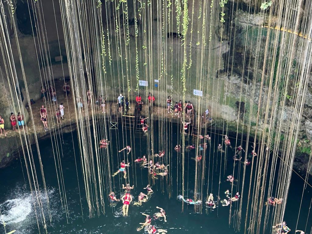 אחרי הביקור בפירמידות נסענו לחלק המרענן של היום, רחצה בשתי סנוטות. המטיילים שנרשמו לסיור עם סנוטה אחת ( מאה פזוס פחות), קיבלו יותר זמן חופשי בפירמידות (בעיני מיותר אלא אם כן אתם חובבי ארכאולוגיה כבדים).