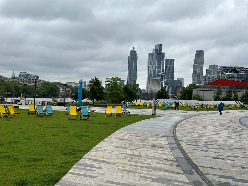 ניתן לחצות את התמזה באמצעות מנהרה להולכי רגל שעוברת תחת הנהר, או לעבור מצד לצד ברכבל האמירויות. אנחנו ויתרנו.