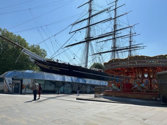 בגריניץ' ראינו את האונייה ההיסטורית קאתי סארק Cutty Sark – אניית סחר יפיפייה מהמאה ה 19 ששימשה להובלת תה והיום משמשת מוזיאון. עוד בקרנו במוזאון הימי National Maritime Museum, בו נותנים כבוד לסמי עופר שתרם אגף. הכניסה למוזיאון חינמית והתצוגות מעניינות. ליד המוזיאון ניתן להציץ לאחד מבתיה של המלכה שגם אליו הכניסה חופשית.