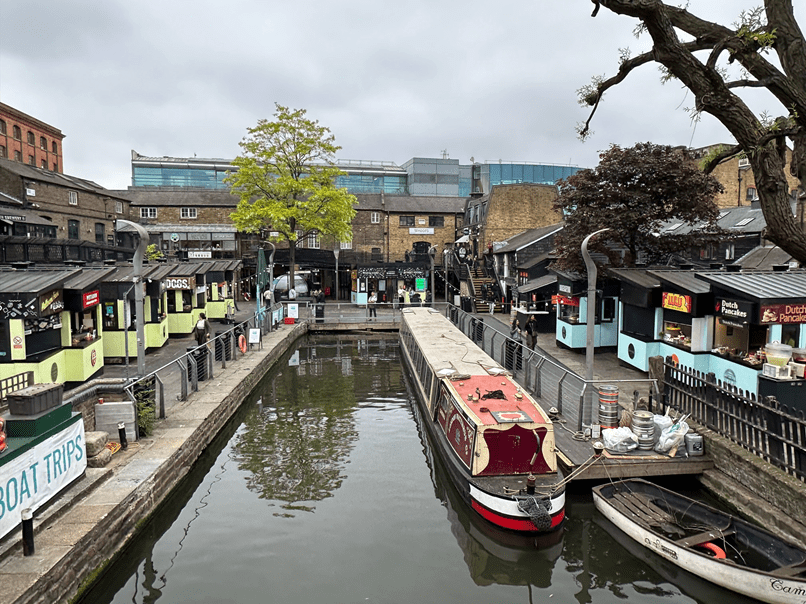 אל קמדן הגענו בשייט מונציה הקטנה. השייט בתעלת ריג'נט, אורך 45 דקות ומלווה בהסברים מעניינים על ההיסטוריה של התעלה. ישנן מספר חברות שמפעילות שייט כזה. אנחנו הצטרפנו לשייט בסירת עץ מקורית ועתיקה של JASON.בשיא העונה רצוי לשריין כרטיסים מראש. בסיום השייט מגיעים אל המעגן היפה והמשופץ בשוק קמדן.