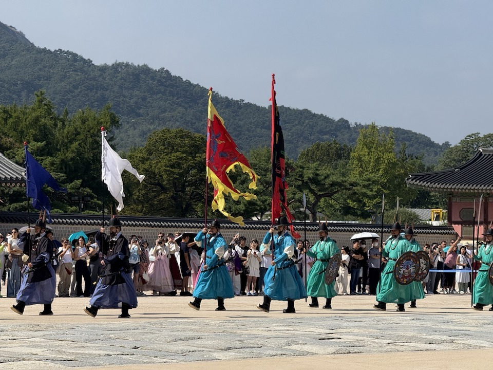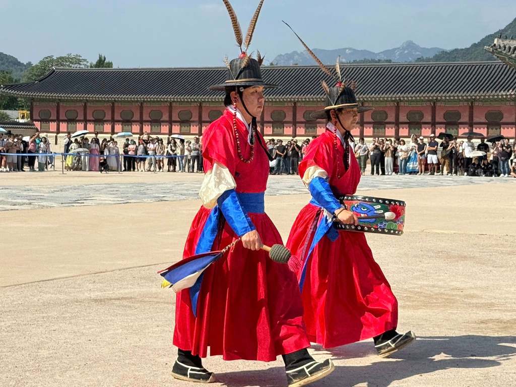ארמון המלך- קיאנגבוק Geunjeongjeon. חילופי המשמר המלכותי. לדעתנו מספיק מבחוץ. ניתן לצפות בטקס ללא תשלום דמי כניסה לארמון.