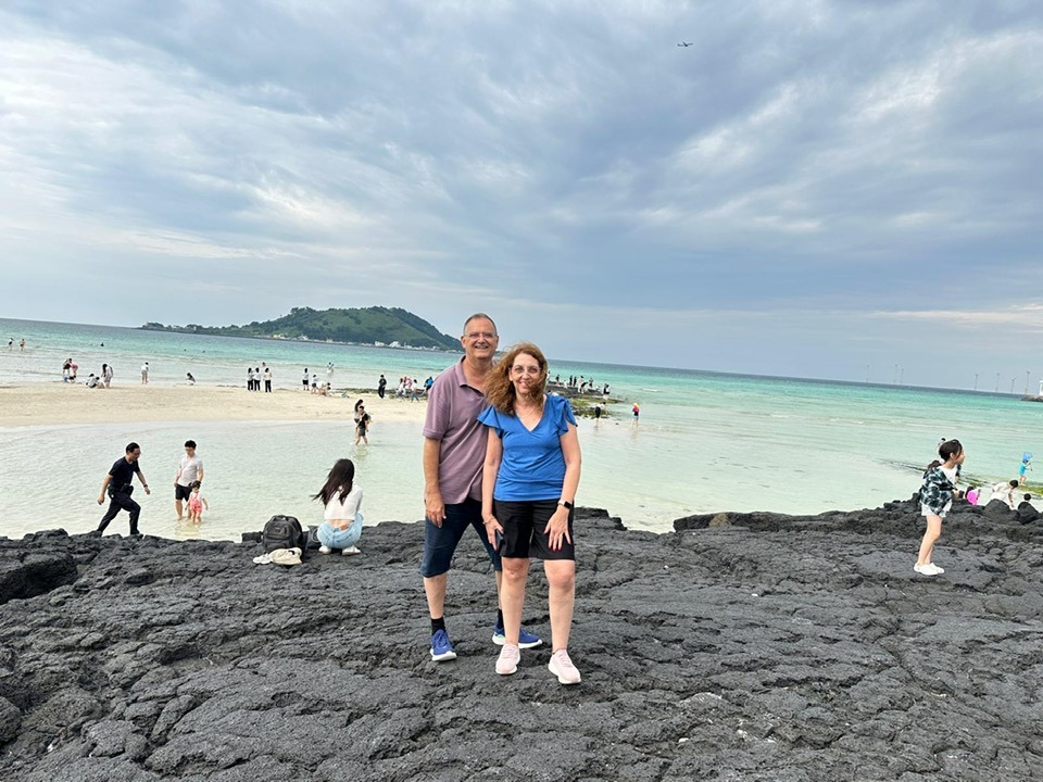 אל האי ג'גו מגיעים בטיסה. שהינו באי 4 לילות ו 3 ימי טיול מלאים. הרגשנו שהזמן היה ממצה והחלוקה טובה. זהו אתר נופש פופולרי של הקוריאנים והם מגיעים אליו לנופש פעיל. האי יפה מאד ויש בו אתרי טבע רבים וגם אטרקציות משפחתיות. אוהבי לכת ימצאו בו מסלולי טיול, האתגריים בהם כוללים טיפוס בהר הגעש הרדום HALLASAN – ההר הגבוה בקוריאה הדרומית. הסמל של האי הם פסלי דמויות מאבן- "סבא אבן" שמביאים מזל. הקוריאנים מטפחים ומלבישים אותם והם משובבי נפש.