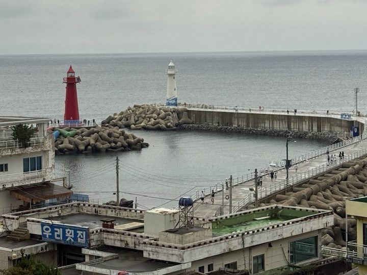ראינו את צמד המגדלורים בלבן ואדום Cheongsapo Twin Lighthouses.